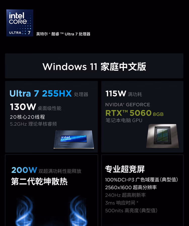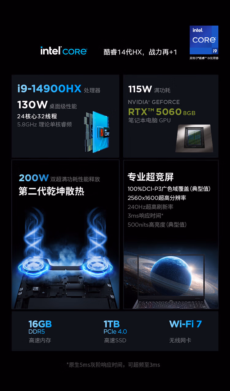 商品名称:拯救者Y7000P 2025 Legion Y7000P IRX10BKEI914900HX16G1TB11C(i9-14900HX 5060 碳晶黑)