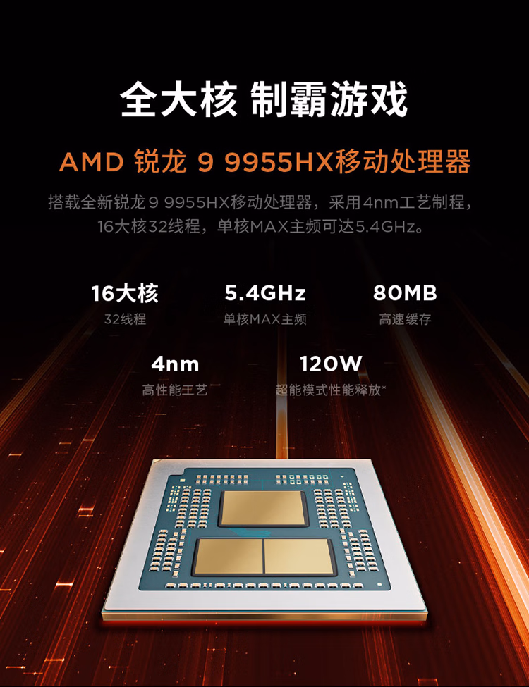商品名称:拯救者R9000P 2025 Legion R9000P AFR10BKER932G1TB11C(锐龙 9 9955HX 5060 碳晶黑)