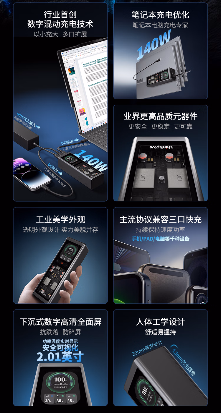 商品名称:联想锋行者140W 三口(Type-C*2+USB)