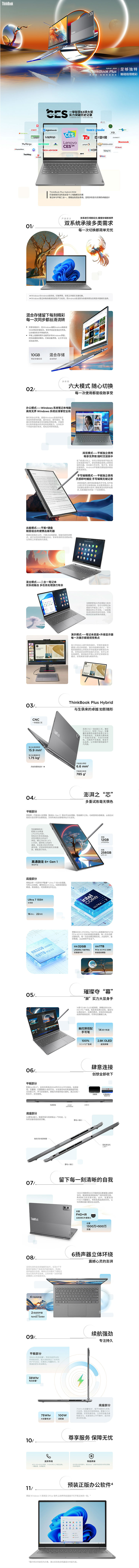 ThinkPad 联想ThinkBook Plus Hybrid 平板笔记本电脑二合一 底座 Ultra7/32G/1T+14英寸2.8K触控屏 平板:骁龙8/12G/256G 底座:Ultra7 处理器 32G内存 1T固态