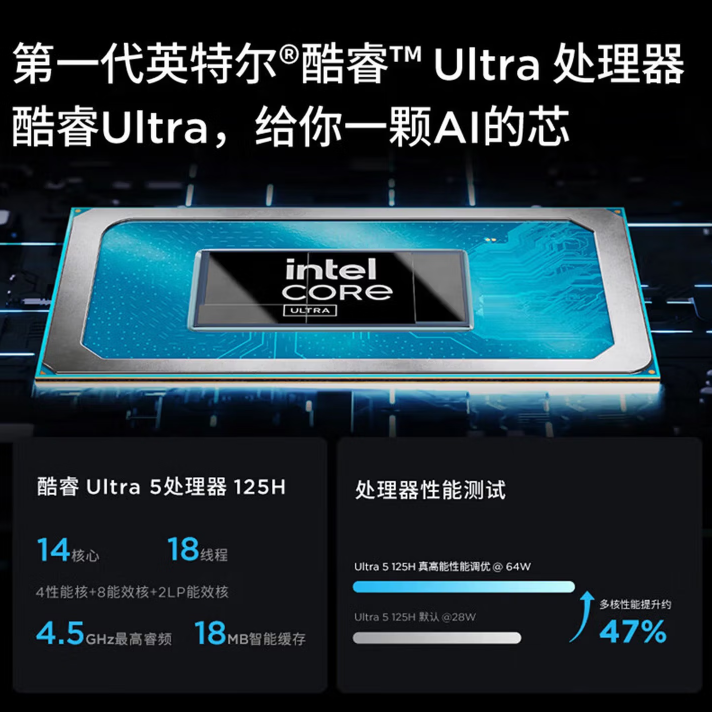 商品名称:联想小新Pro14 笔记本电脑AI超能本补贴高性能酷睿Ultra5 可选13代标压i7 轻薄学生设计游戏办公手提 酷睿Ultra5-125H 16G内存