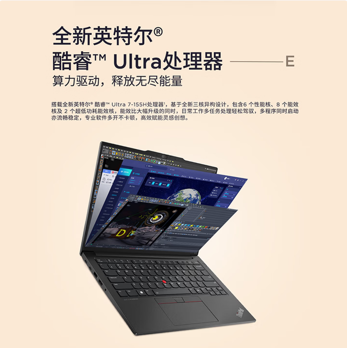 商品名称:ThinkPad联想笔记本电脑E14AI PC商务办公学生轻薄本英特尔酷睿Ultra处理性能携本2024设计编程软件开发IBM U5 125H/16G/512G/高清屏 02CD 24款Ultra官方标配