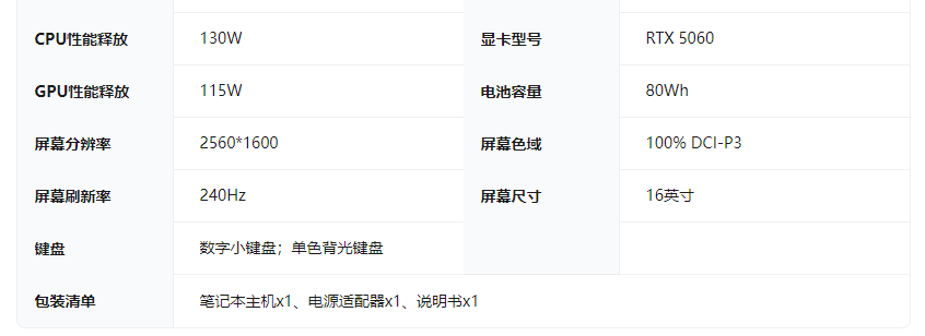 商品名称:联想拯救者Y7000P 2025 游戏笔记本电脑(i9-14900HX 16G 1T RTX5060 2.5K 240Hz 黑)