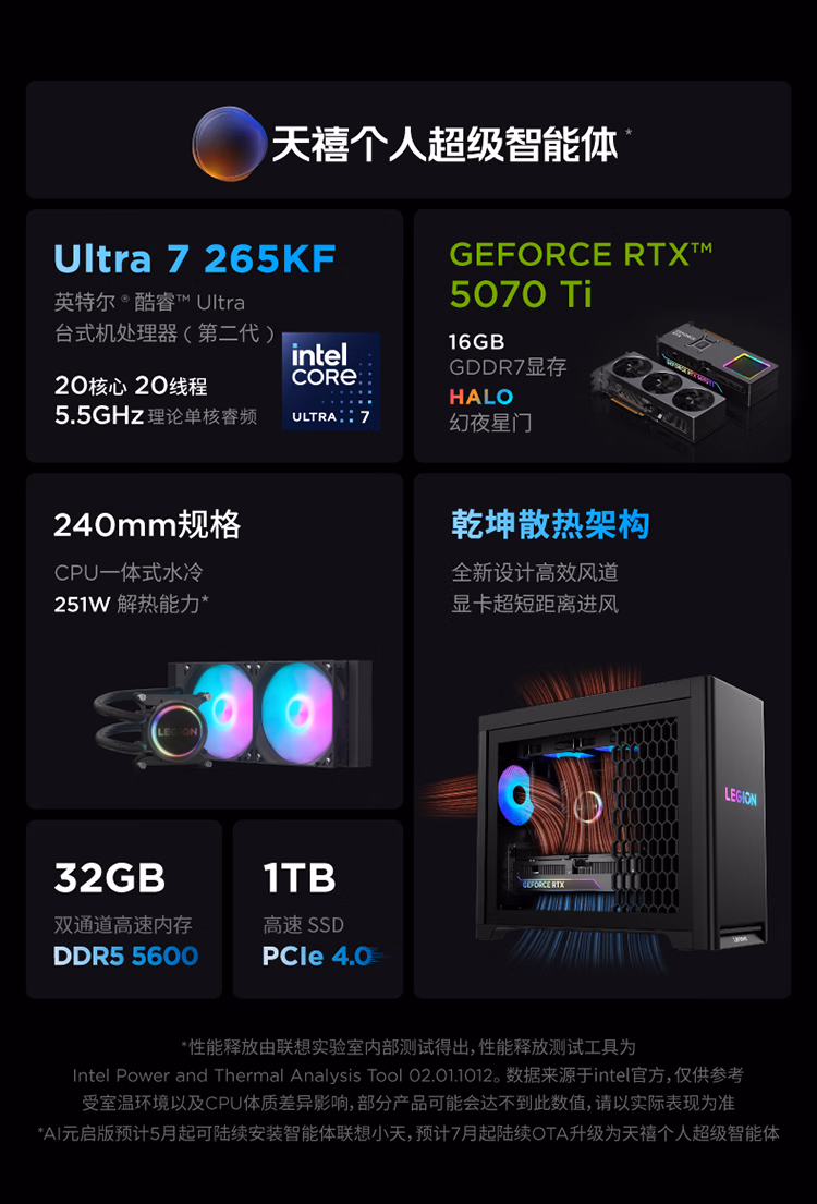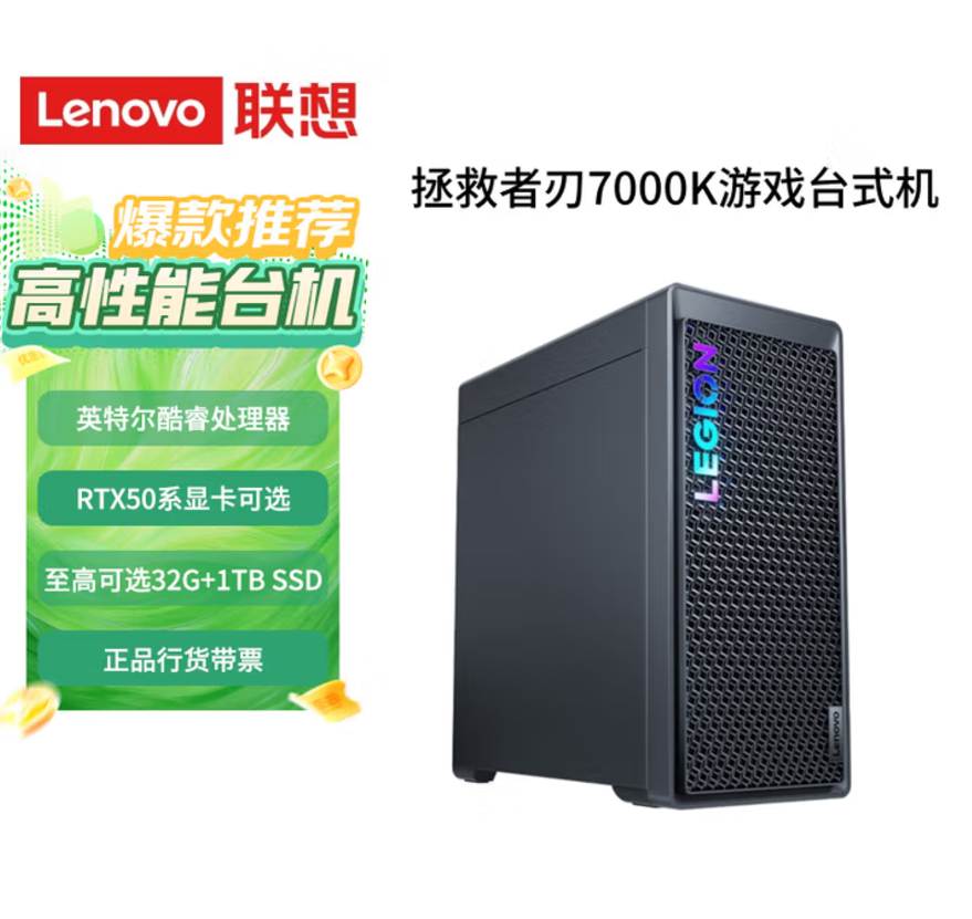 商品名称:联想(Lenovo) 拯救者刃7000K 2025 游戏电竞 设计 台式机电脑主机 可选RTX50独立显卡 单主机 i9-14900HX 32G 1T 5070Ti