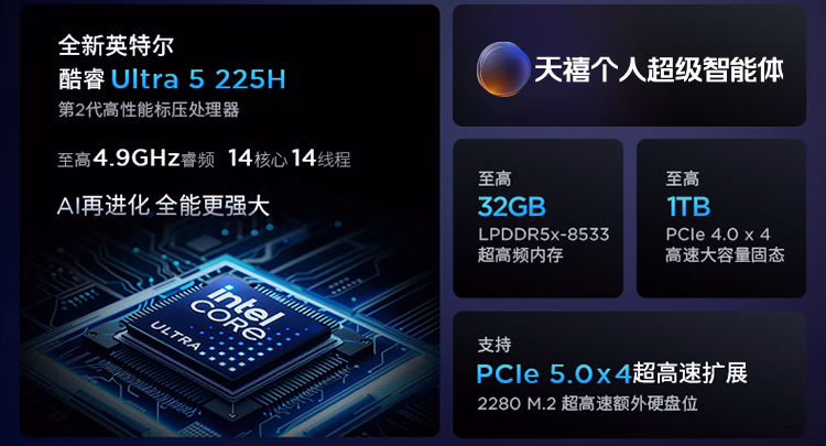 商品名称:小新Pro14GT AI元启版 小新Pro 14 IAH10GRXU532G1TB11C (Ultra5 225H )