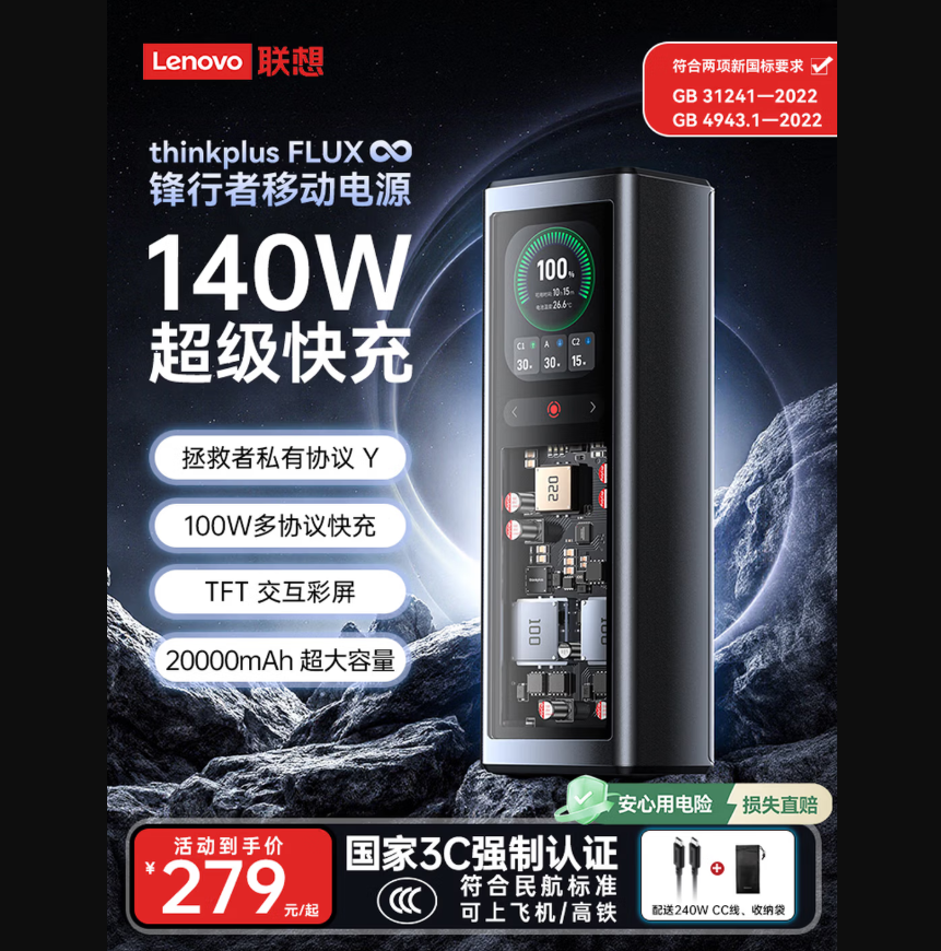 商品名称:联想锋行者140W 三口(Type-C*2+USB)