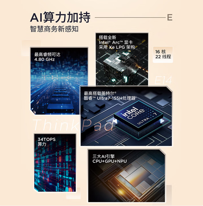 商品名称:ThinkPad联想笔记本电脑E14AI PC商务办公学生轻薄本英特尔酷睿Ultra处理性能携本2024设计编程软件开发IBM U5 125H/16G/512G/高清屏 02CD 24款Ultra官方标配
